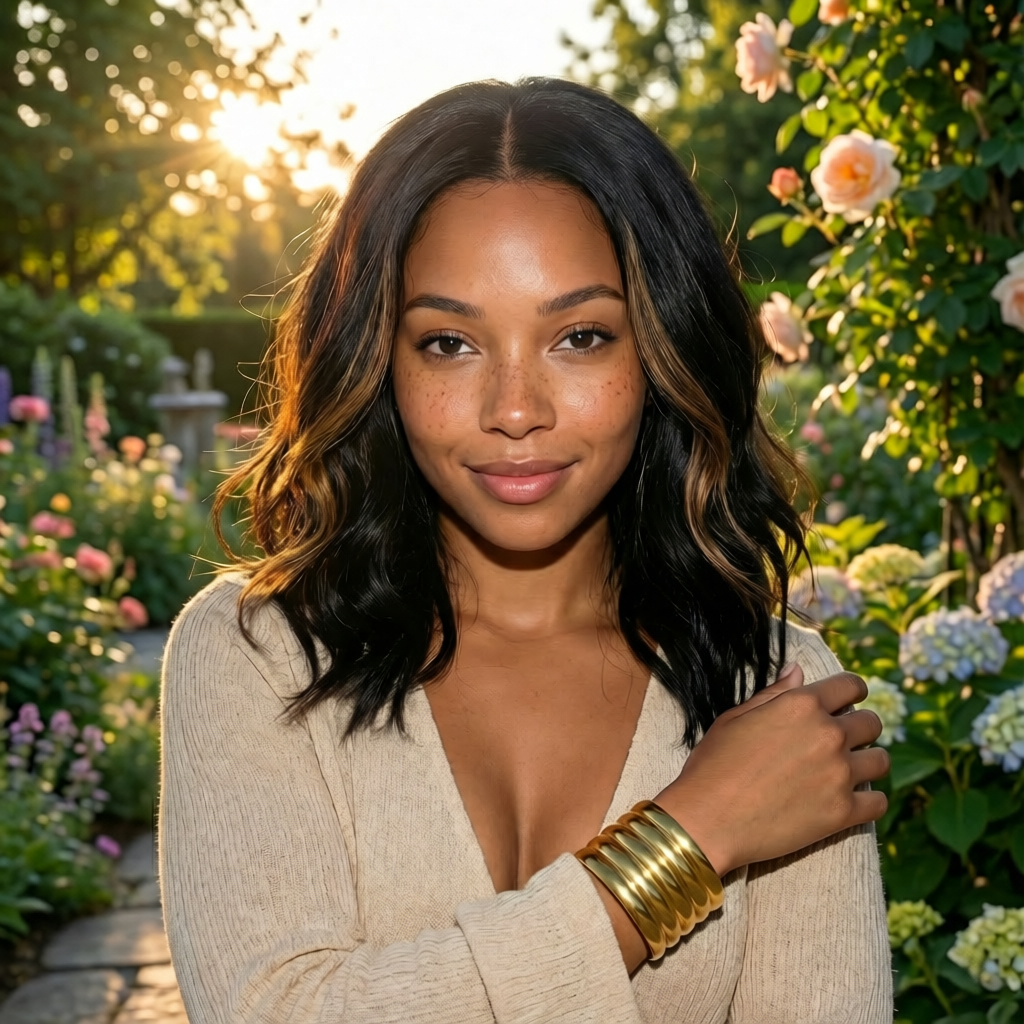Halsketten oder Ohrringe sind nicht Bestandteil dieses Artikels.
