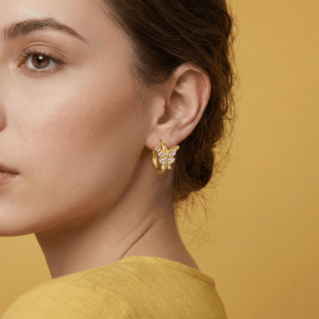 Die Kombination aus klassischen Creolen und funkelndem Schmetterlingsmotiv macht dieses Schmuckstück zu einem besonderen Highlight für jede Schmucksammlung.
