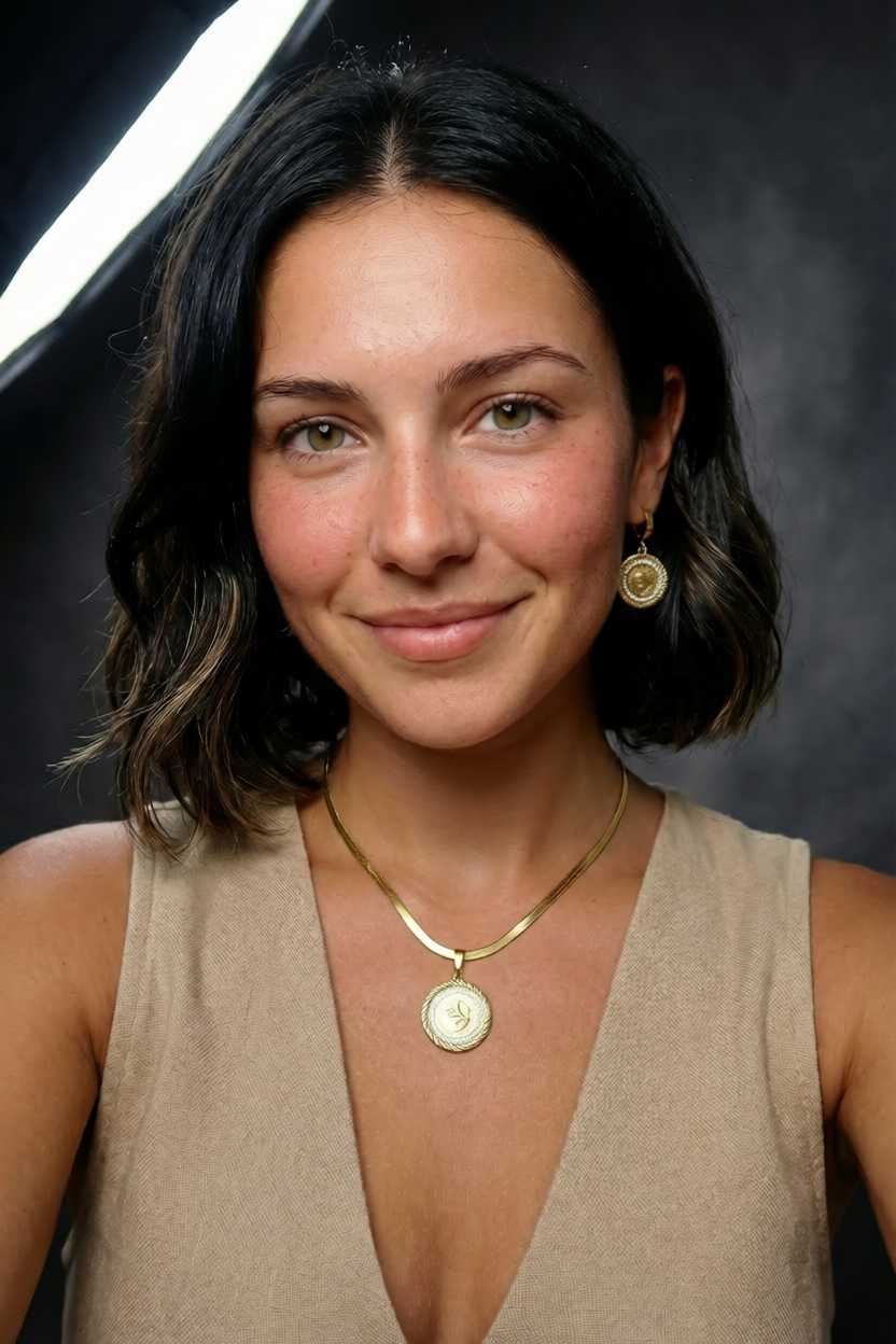 Die Halskette und die passenden Ohrringe bestehen aus hochwertigem Edelstahl und sind mit einer 18K PVD Goldbeschichtung veredelt. Diese Beschichtung sorgt für eine hohe Widerstandsfähigkeit und macht den Schmuck wasserfest sowie schweißresistent.