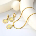 Der runde Anhänger mit feiner Struktur und funkelnden Steinen verleiht dem Set eine luxuriöse und zeitlose Ausstrahlung. Dank der sorgfältigen Verarbeitung ist der Schmuck angenehm zu tragen, hautfreundlich und behält lange seinen Glanz. Das Set eignet sich ideal für den Alltag sowie für besondere Anlässe.
