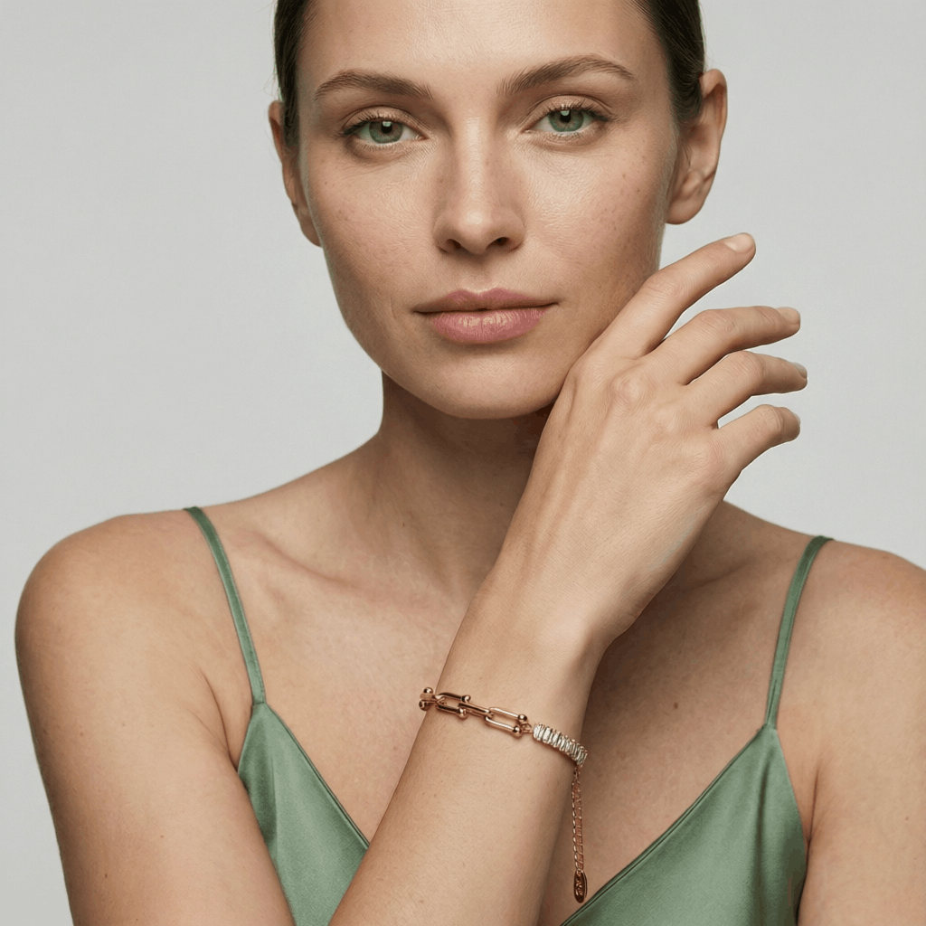 Die praktische Verlängerungskette ermöglicht eine individuelle Anpassung der Länge und sorgt für optimalen Tragekomfort. Das Armband passt perfekt zu eleganten Outfits sowie zu modernen Casual-Looks.