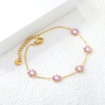 Das Golden Daisy Charm Bracelet überzeugt durch sein verspieltes und zugleich elegantes Design. Die feinen Blumen-Elemente in zarten Farben verleihen dem Armband eine feminine und stilvolle Ausstrahlung. Es eignet sich perfekt für den Alltag sowie für besondere Anlässe.