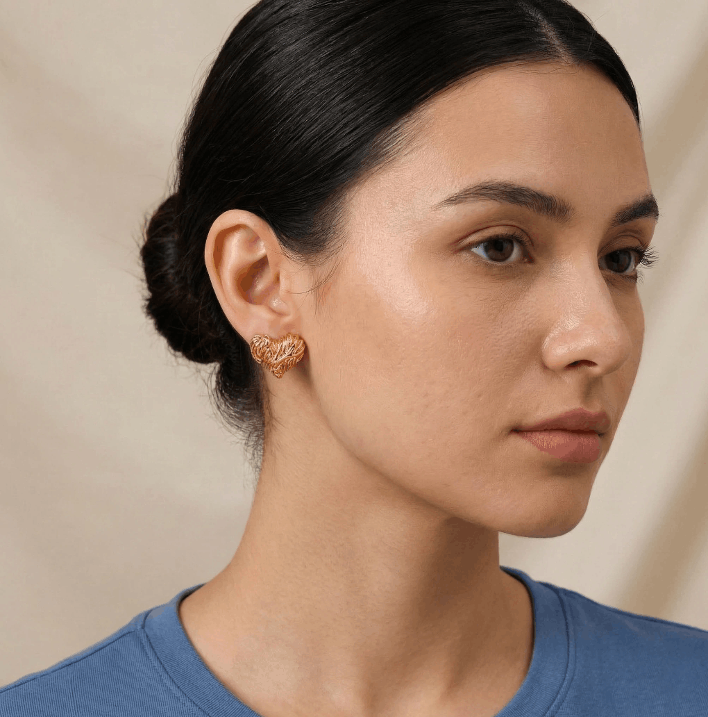 Die Golden Heart Sculpt Elegance Ohrringe sind ein stilvolles Schmuckstück mit einem modernen und gleichzeitig romantischen Design. Die elegante Herzform mit einer besonderen strukturierten Oberfläche verleiht den Ohrringen eine luxuriöse und moderne Ausstrahlung.