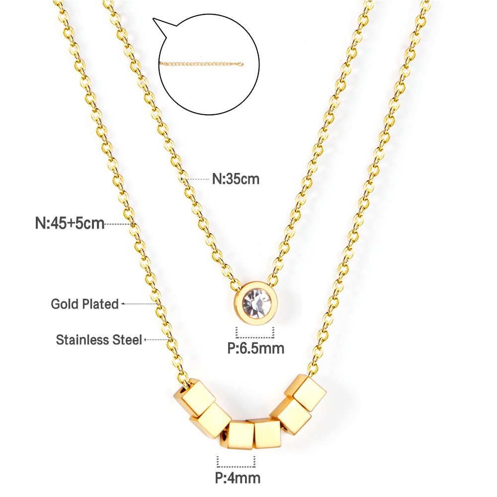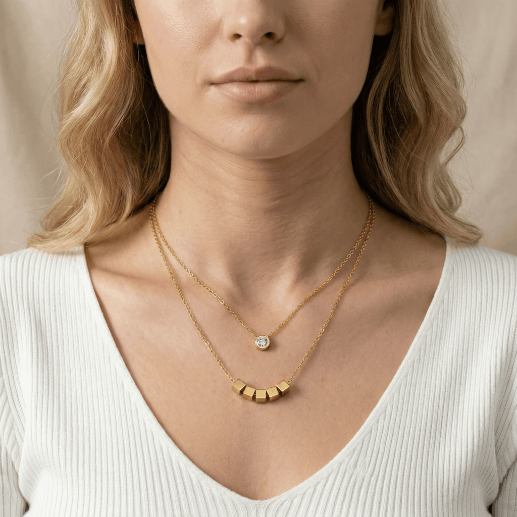 Diese stilvolle, doppellagige Halskette überzeugt durch ihr modernes und zugleich zeitloses Design. Sie besteht aus hochwertigem Edelstahl (Stainless Steel) und ist mit einer langlebigen 18K PVD Goldbeschichtung veredelt.