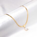 Die flache, strukturierte Kette (3 mm Breite) harmoniert perfekt mit dem runden Verbindungselement (7 mm) und dem eleganten Perlen-Anhänger (11 mm). Das Design wirkt minimalistisch und dennoch ausdrucksstark – ideal für Alltag und besondere Anlässe.