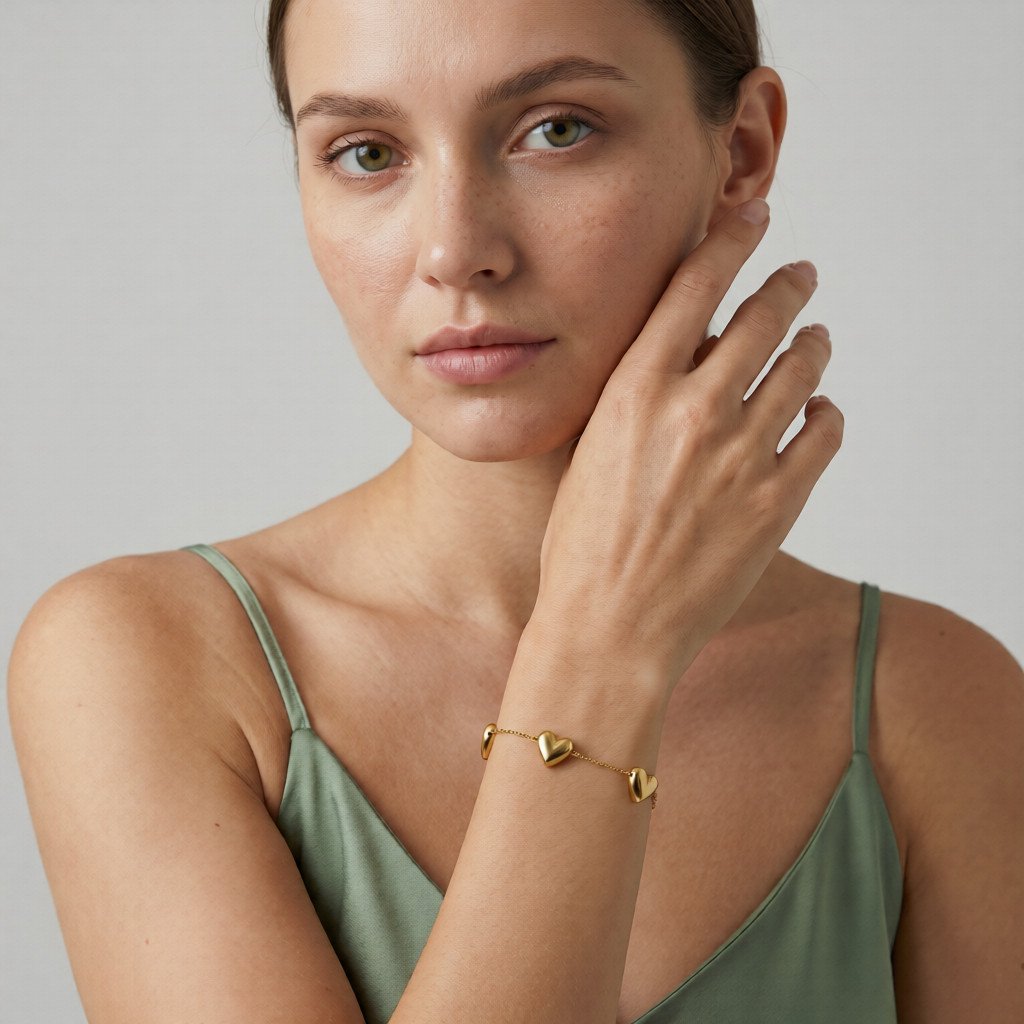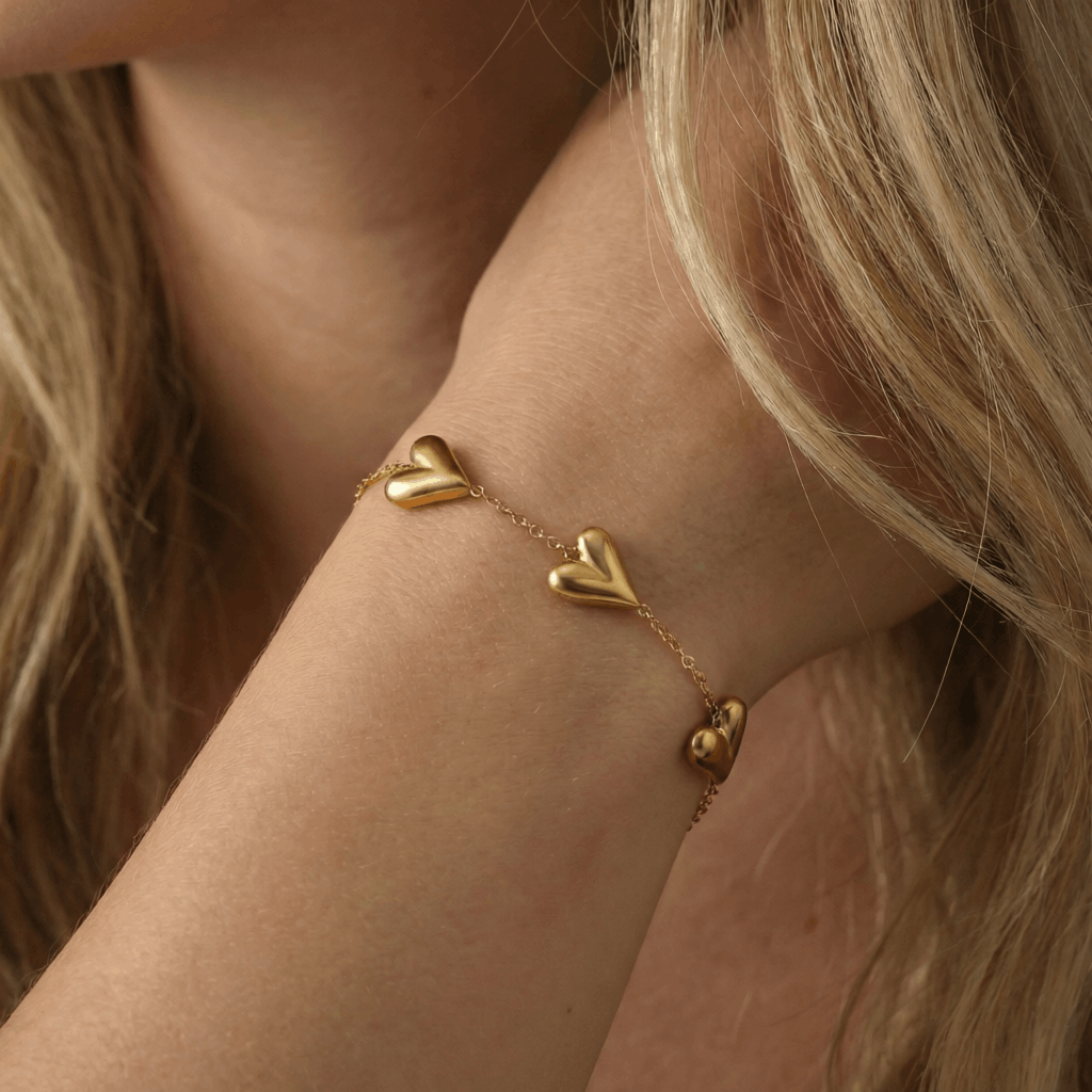 Das Golden Puffy Heart Bracelet besticht durch sein modernes und zugleich romantisches Design. Die glänzenden Herz-Elemente verleihen dem Armband eine stilvolle und feminine Ausstrahlung. Durch seine klare Formensprache wirkt es elegant und zeitlos.