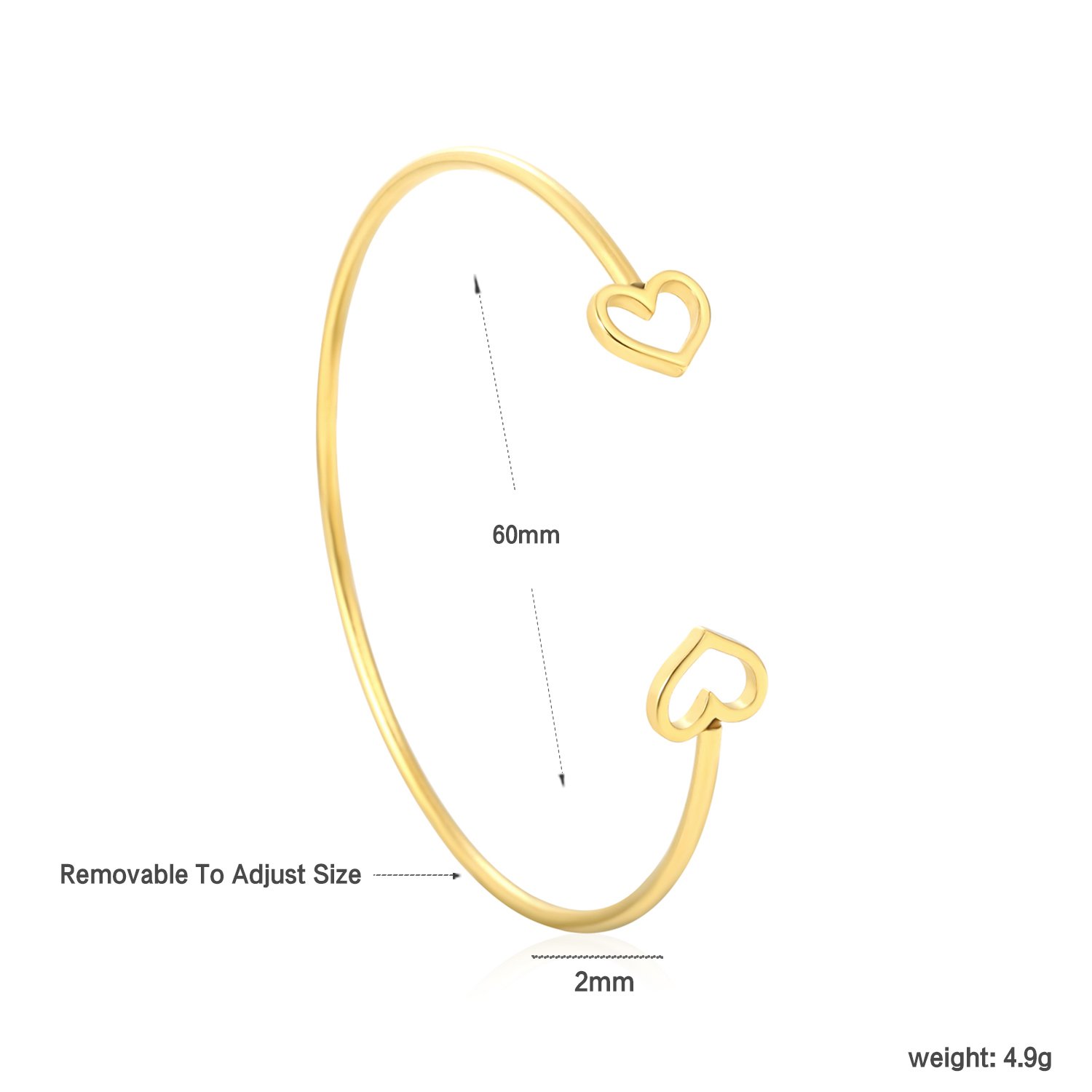 Das Open Heart Gold Bracelet überzeugt durch sein minimalistisches und zugleich emotionales Design. Die feinen Herzenden verleihen dem Armband eine feminine und elegante Ausstrahlung. Gefertigt aus robustem Edelstahl und veredelt mit einer langlebigen 18K PVD Goldplattierung, bietet dieses Schmuckstück eine hohe Qualität und dauerhaften Glanz.