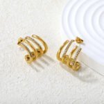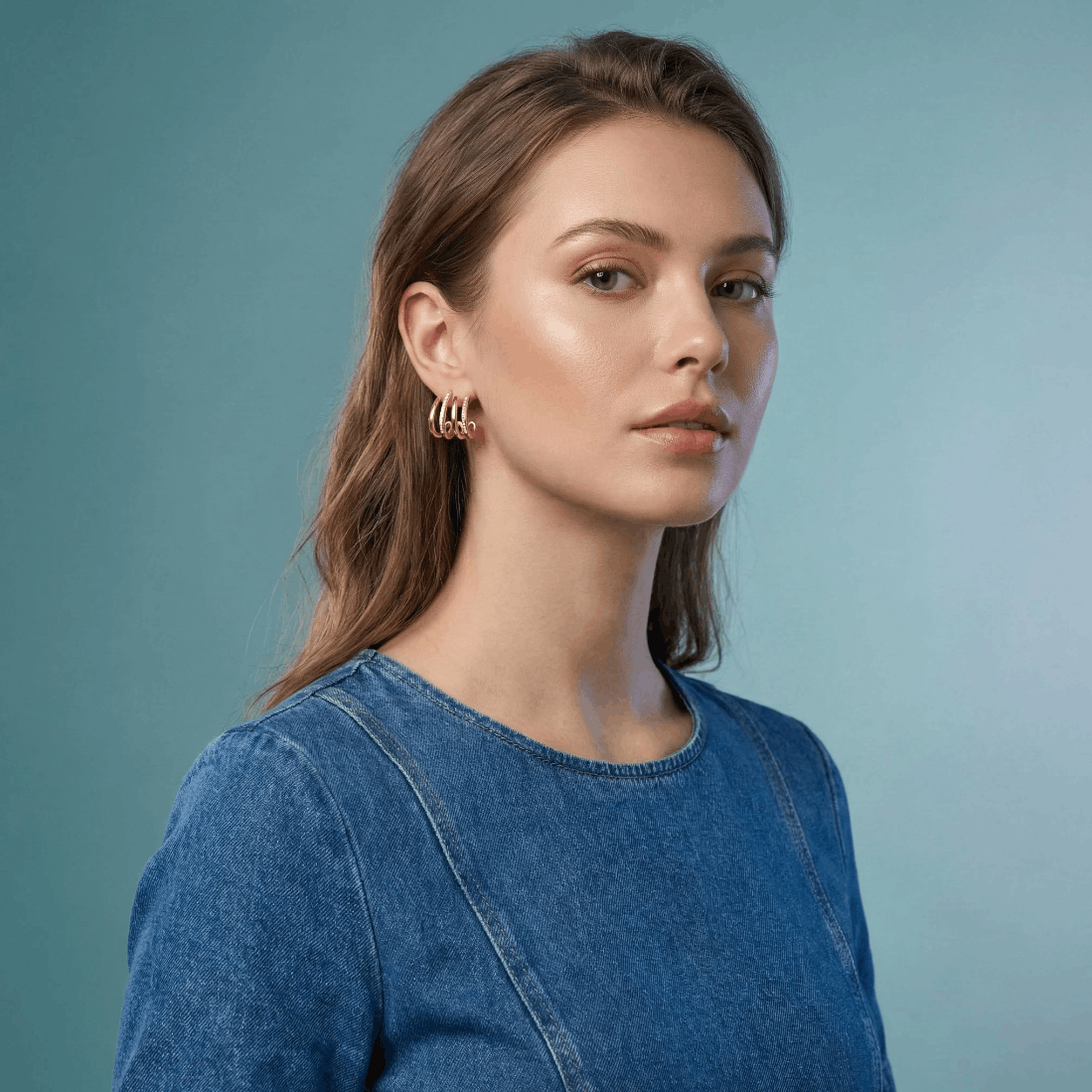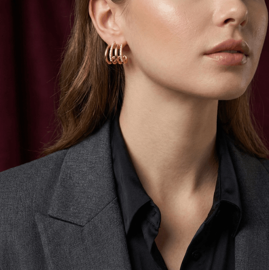 Die Radiant Triple Hoop Elegance Ohrringe sind ein stilvolles Schmuckstück für alle, die modernes Design mit eleganter Ausstrahlung lieben. Das besondere dreifache Creolen-Design sorgt für einen auffälligen und zugleich eleganten Look, während die feinen funkelnden Steine dem Schmuckstück zusätzlichen Glanz verleihen.