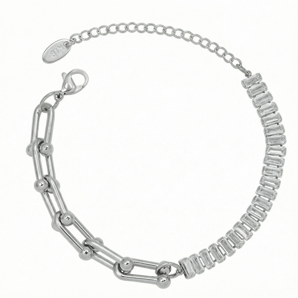 🔹 Design: Gliederkette kombiniert mit rechteckigen Kristallen