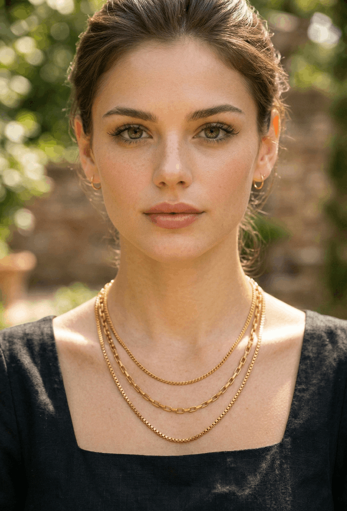 Die Kombination aus feiner Gliederkette, moderner Rechteck-Gliederkette und klassischer Strukturkette verleiht dem Schmuckstück eine trendige und gleichzeitig elegante Ausstrahlung.