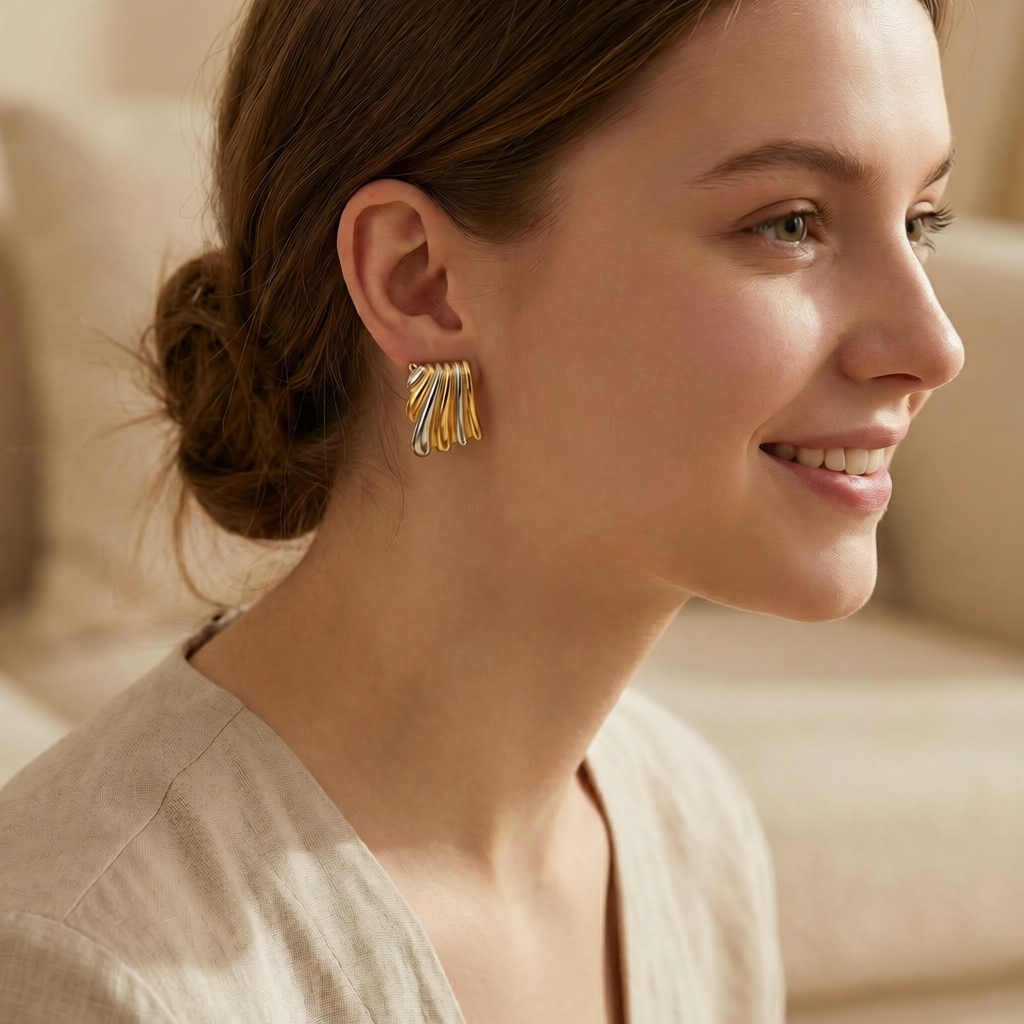 🌊 Das moderne Wellen-Design in Gold- und Silberoptik sorgt für einen stilvollen Kontrast und macht die Ohrringe zu einem besonderen Blickfang. Sie lassen sich vielseitig kombinieren und passen sowohl zu eleganten als auch zu modernen Outfits.