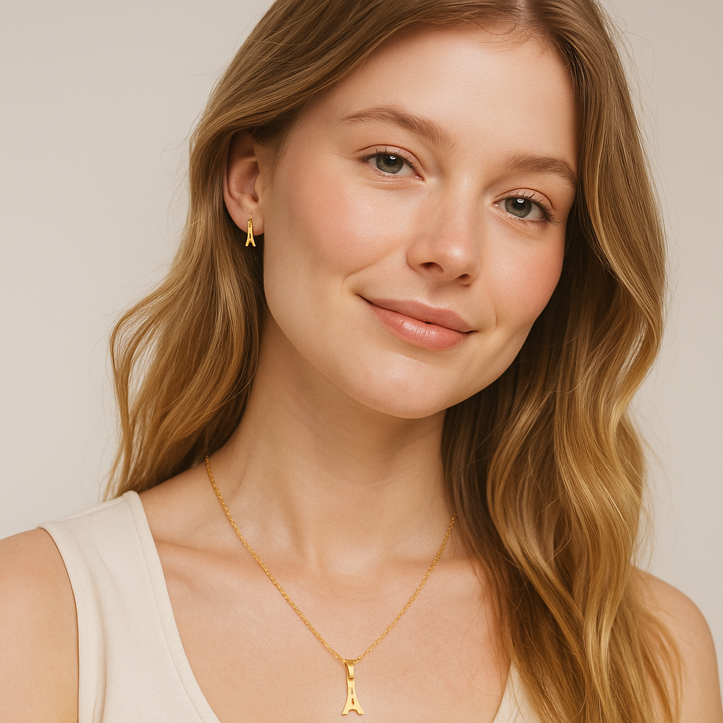 Gefertigt aus hochwertigem Edelstahl und veredelt mit einer exquisiten 18K-Goldplattierung, glänzen Ohrringe und Kette mit einem warmen, luxuriösen Goldton – ohne zu verblassen, ohne zu verfärben, absolut alltagstauglich.
